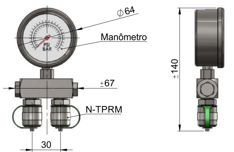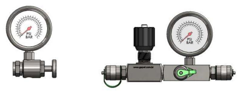 Características Técnicas: Permite a medição de 2 pressões diferentes e alternadas por meio de 1 só manômetro. Exemplo de aplicação bomba hidráulica para medição de frente e ré.